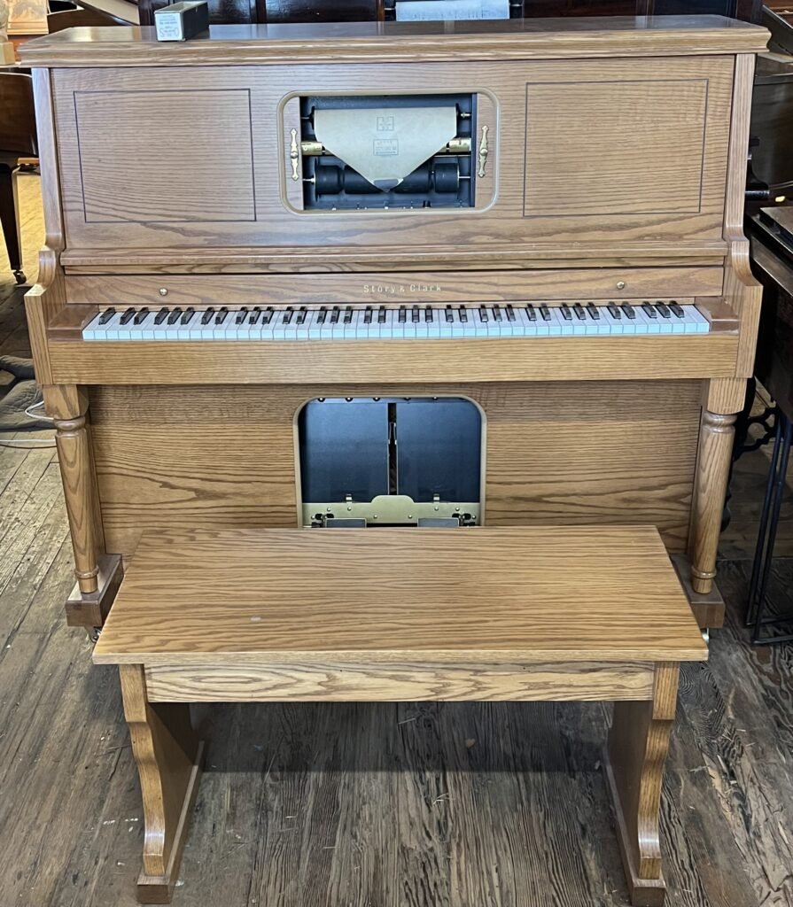 2000 Story & Clark 48” Studio Player Piano, Golden Oak Satin Finish, Manual or Electric. Reg $3799. Now, only $2999. Save $800